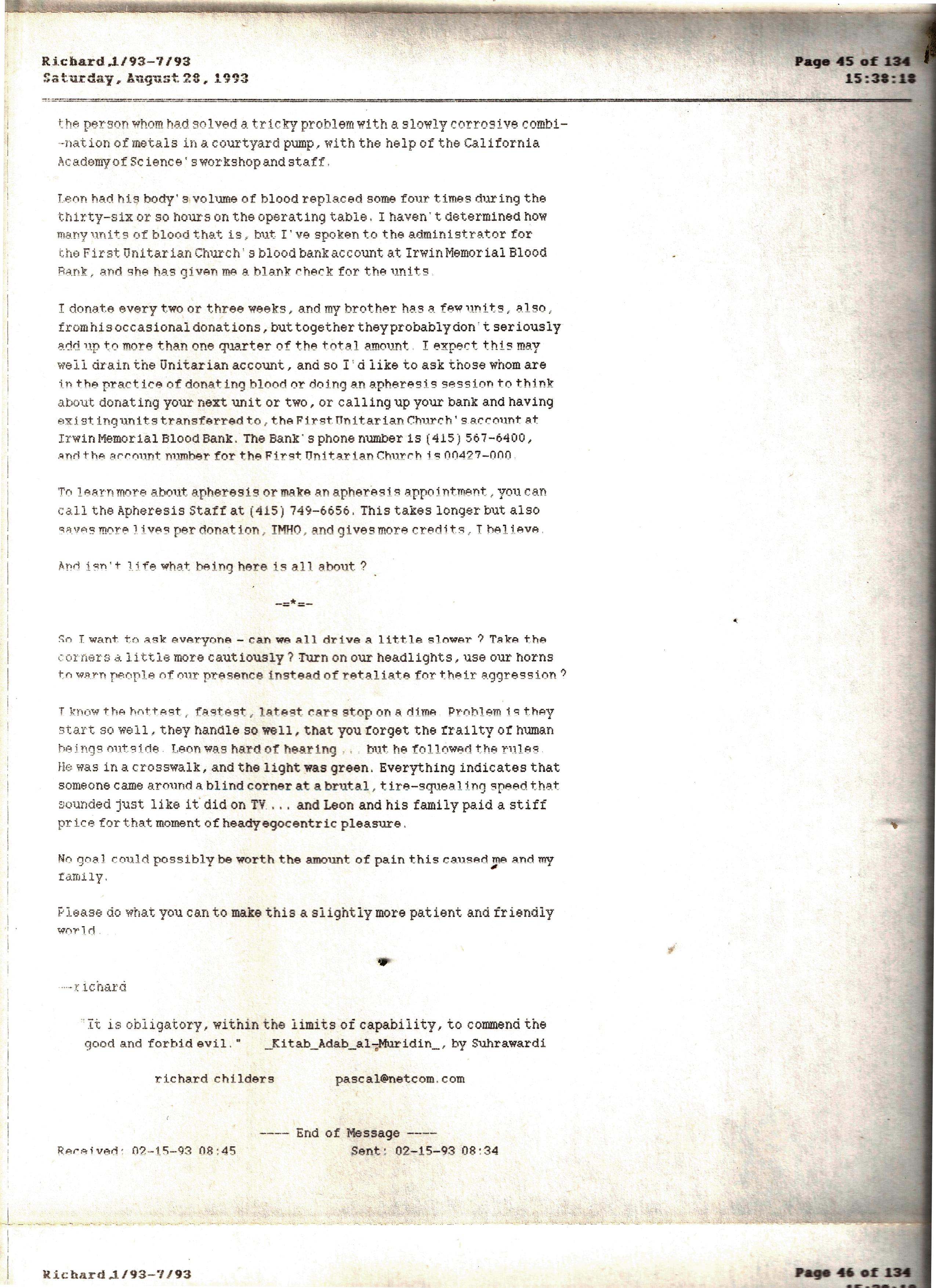 - 09 Feb 1993: Jumping now to page 47, 48 and 49, we see my reply to Pam's email [14]