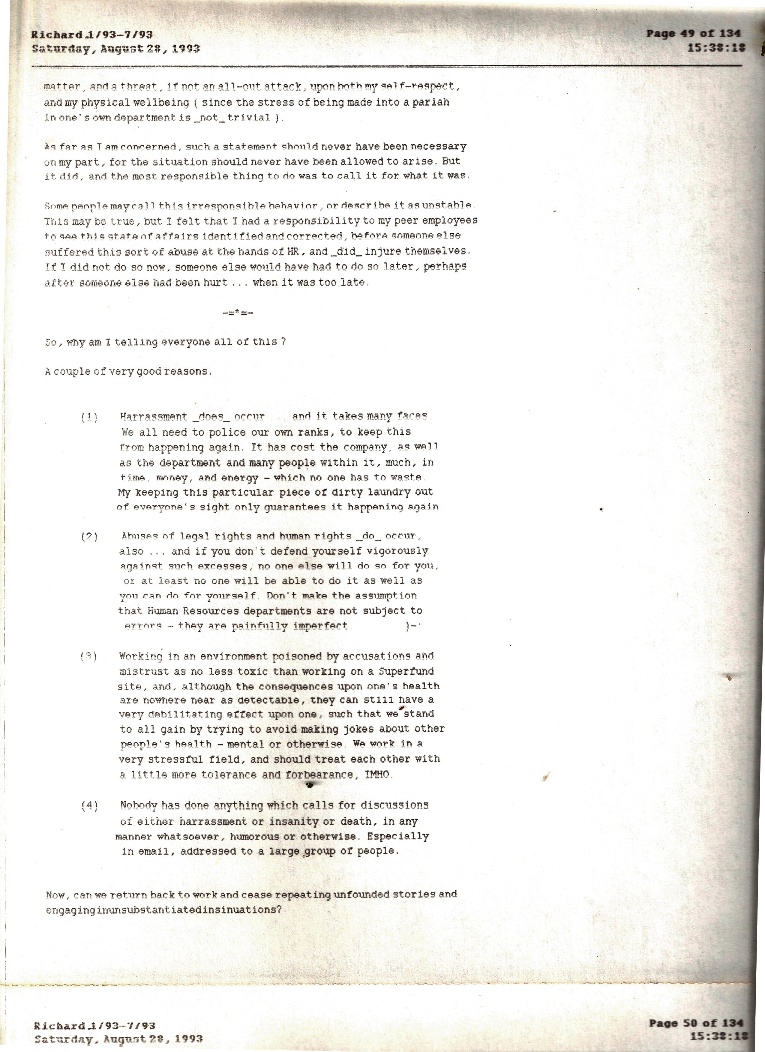 A year later, in September, 1992 - right at the end of the Jewish calendar year, almost to the day (and a traditional time for 'payback') - I was accused [5], by a coworker, of sexually harassing her, via electronic mail.